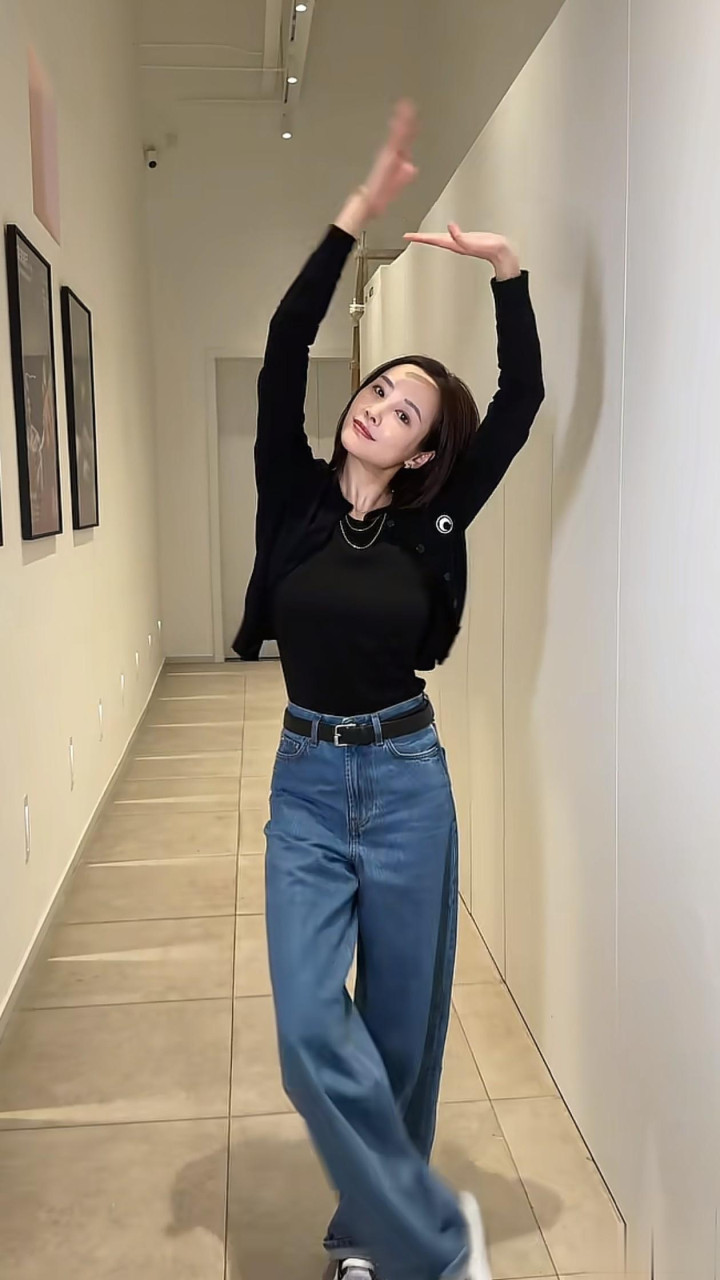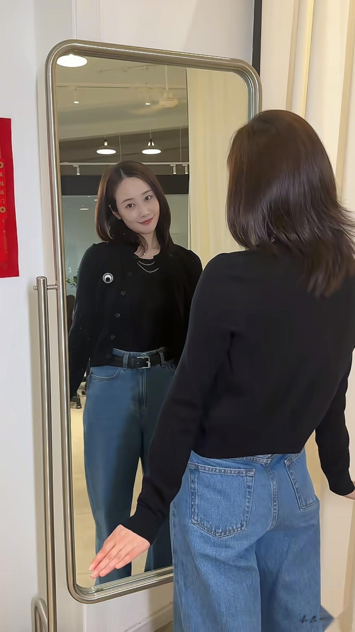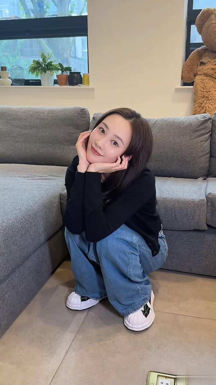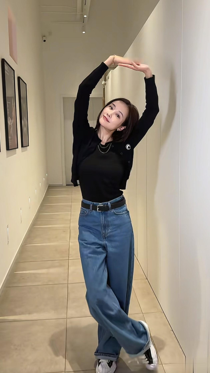 37岁李纯带火了秋日穿搭: 小开衫+牛仔裤, 减龄洋气, 嫩得像25岁…